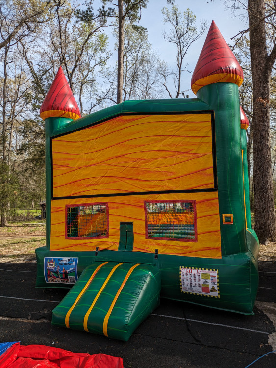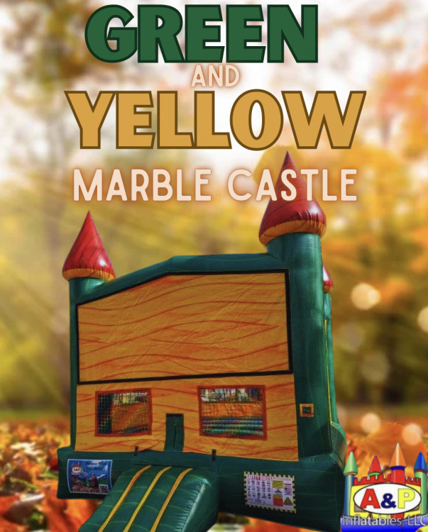 Unleash slam dunks and bouncing fun with the Green and Yellow Marble Castle! This 13'x13' inflatable fortress boasts vibrant dark green and yellow walls, perfect for any party theme. Kids will soar high and test their skills on the built-in mini basketball hoop, while the spacious bounce area keeps the excitement going all day long. Crafted with durable materials for safety and endless entertainment, the Green and Yellow Marble Castle is the ultimate addition to backyard adventures and birthday celebrations!