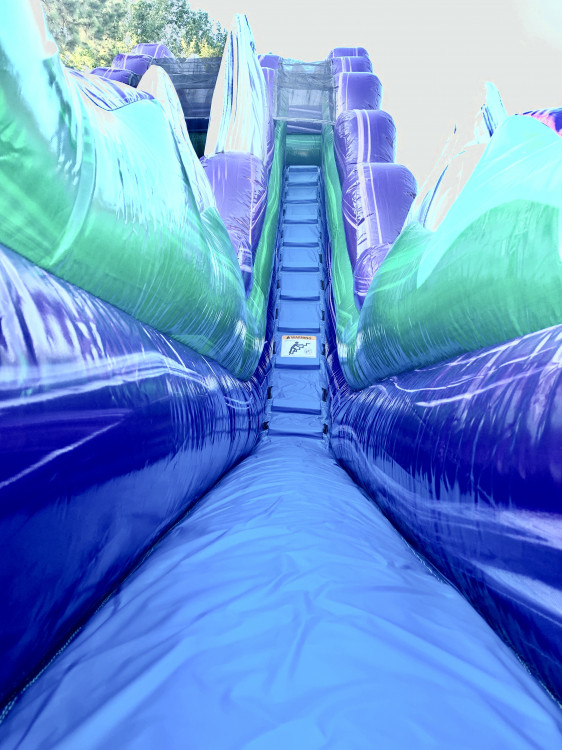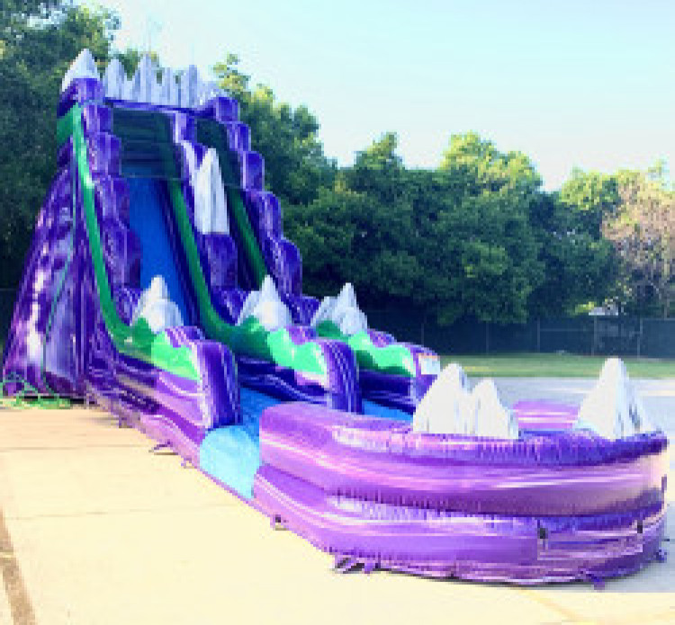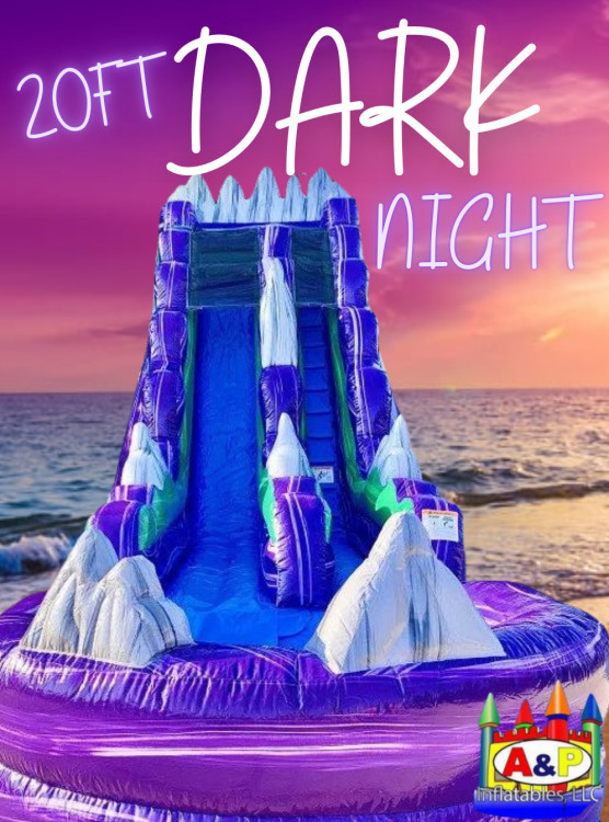 Plunge into thrills with the Dark Night Slide! This 20' inflatable adventure features a towering ascent, a fast, slippery slide, and a refreshing splash pool finale. Feel the rush of anticipation as you climb, then whoosh down the slope. Perfect for backyard parties, the Dark Night Slide guarantees shrieks of joy and unforgettable memories!