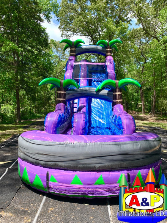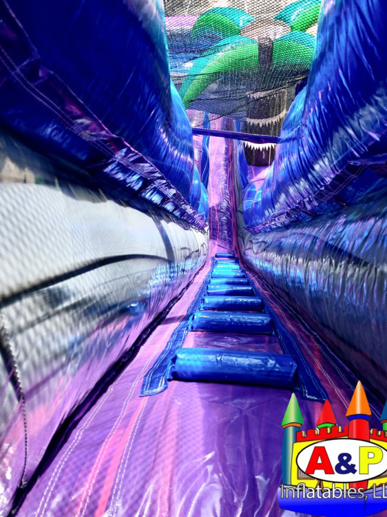 Conquer summer heat with the 22ft Purple Crush inflatable water slide! This vibrant beast boasts a towering climb, thrilling slope, and a refreshing splash pool finale. Blast down the slide, feeling the cool purple embrace wash over you as you scream with laughter. Perfect for backyard parties or community gatherings, the Purple Crush guarantees epic, unforgettable summer fun!
