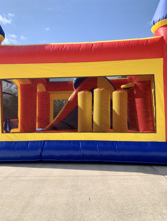 The 5-in-1 Combo isn't just a bounce house, it's a backyard carnival! Jump into endless fun with a spacious bouncing area, soar down the speedy slide, conquer the mini tunnel, and test your skills with the built-in basketball hoop. Perfect for parties or everyday play, this inflatable wonderland provides hours of active entertainment for kids of all ages!