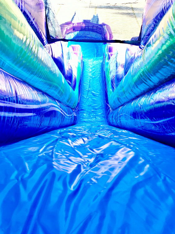 Plunge into thrills with the Dark Night Slide! This 20' inflatable adventure features a towering ascent, a fast, slippery slide, and a refreshing splash pool finale. Feel the rush of anticipation as you climb, then whoosh down the slope. Perfect for backyard parties, the Dark Night Slide guarantees shrieks of joy and unforgettable memories!